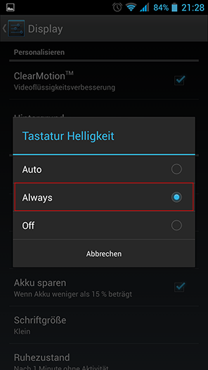 Wiko Highway - Dauerhaftes Leuchten den Softkeys aktivieren 3
